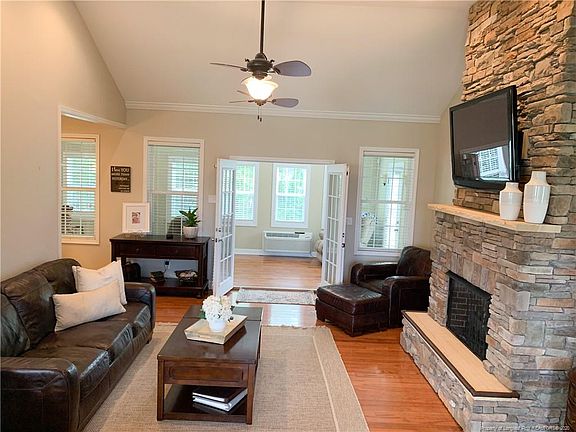 Gorgeous kept, 2236 +/- sq. ft. home with all wood flooring on main level, split floor plan. Large kitchen, large bedrooms. The master bedroom is over-sized with a double sink bathroom and all tile shower and large walk-in closet. There is an enclosed sunroom with beautiful wood flooring. Bonus room upstairs with built-in office space area. Outdoors there is an adorable She-shed. This house sits on a .54+ acre, well-groomed, over-sized yard. And, WOW, a custom fire pit for many beautiful nights of entertaining is waiting for you too. This is located in a great location close to shopping and schools, as well as easy access to Fayetteville and Raleigh. This beauty will not last long with so many features and extras.