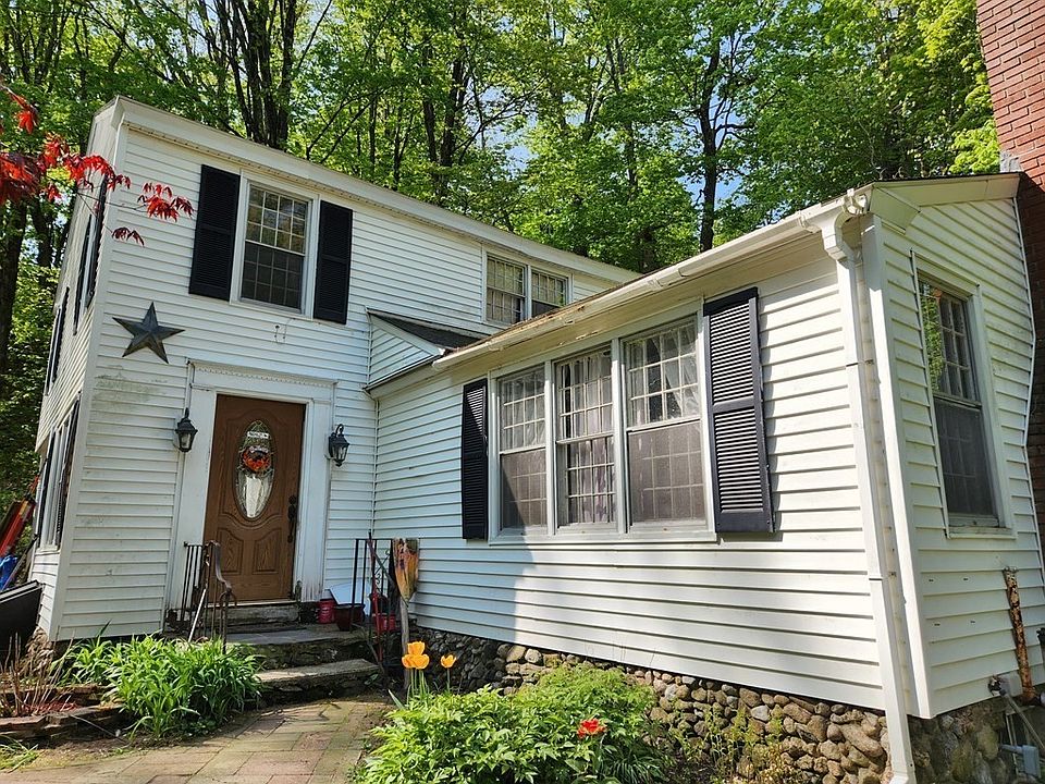 Want a home at the end of a dead-end street surrounded by 1.35 acres of privacy (4 parcels on one deed)? Here it is! The first floor offers a good-sized kitchen and dining room, 1/2 bath, and a large living room with a vaulted and beamed ceiling, beautiful hardwood floor, and a working fireplace. Upstairs you'll find 3 bedrooms with beautiful hardwood floors, and a full bath. Bring your landscaping/gardening ideas because this diamond-in-the-rough yard is the perfect setting for outside entertainment areas, hammocks, flower beds, shrubbery, you choose! A small brook running along one side offers a calming babble. Your own little oasis, yet close to commuter routes, shopping, schools and other local amenities. Come see if this is "the one!"