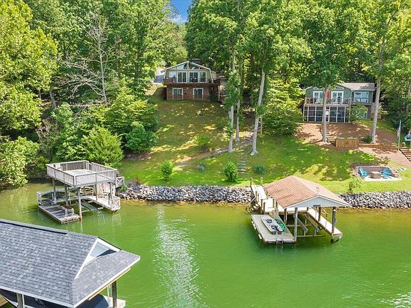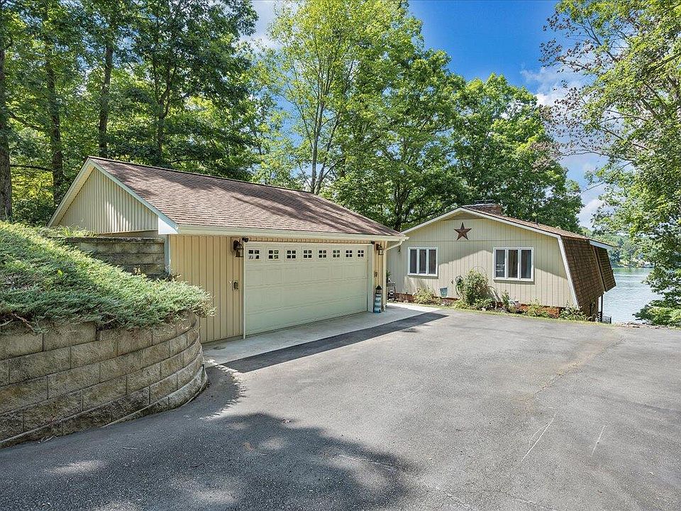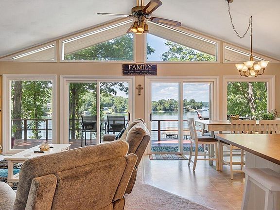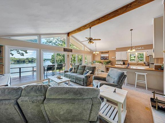 Welcome to your dream lakefront property!This charming home features a unique Dutch style roofline, woodburning fireplace and a spacious deck to enjoy your unobstructed view of lake.Immediately see the lake when you step inside to the open concept kitchen and living space. Lower level has kitchenette and brand new indestructible Epoxy flooring with a lifetime warranty.Enjoy the easy walk down to your dock which features a covered single lift, steps for getting into the water and a large floater.Park your vehicles in the large insulated 2 car garage and enjoy the lake access of the community dock. High speed internet available!