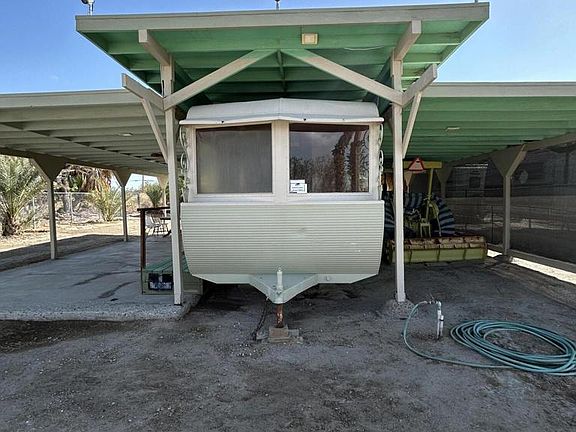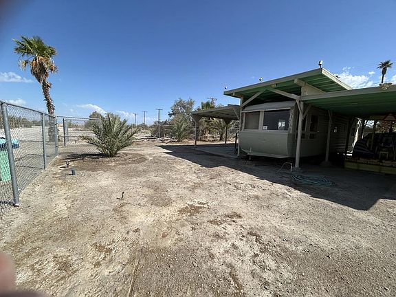 Handy Man Special! Come look at this fully fenced, cozy 30 ft. trailer. You own the Land. It does need to be remodeled to your liking, blank canvas. Located in Salton Sea Beach, fully fenced with 7 Female Madjools and 1 Barhi Tree, 1 male Pollen, a complete mini farm. Beautiful Date Palms that have Solar Powered Automatic Watering. Solar Exterior Lighting. Hurry this wont last! Cash Only, Priced to Sell. Water is on, Septic is on site, electricity is off.