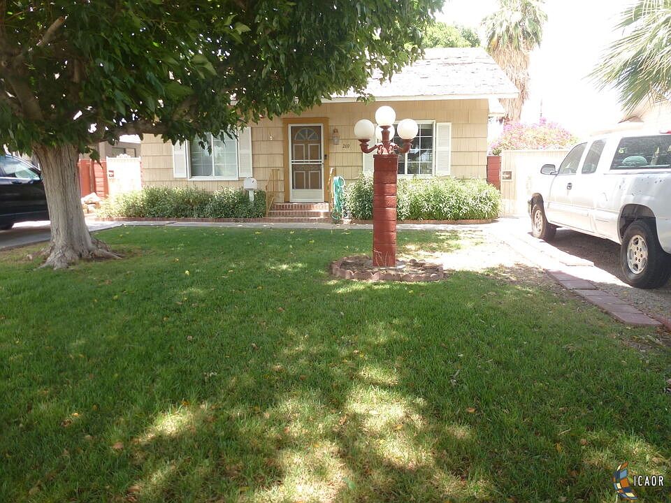 As you enter the home you will be surprised how clean and well maintained this home has been kept throughout the years. This R-2 lot with a 2bedroom, 2 bathrooms could actually be a 3-bedroom home with the den with a closet and fireplace could turn into a third bedroom. The home has recently painted inside, has laminate flooring, new sink and faucet in kitchen, ceiling fans and recently remodeled master bathroom and auto lights throughout. The refrigerator, stove washer & dryer and TV in master bedroom stay. You enter the garage through the alley. The insulated garage has sewer, hot and cold water, 220 electric outlet and two electric meters. From the cool shade in the front yard, you can enjoy a girls softball game in the park across the street. The park also features tennis courts and a kid's playground with public restrooms.