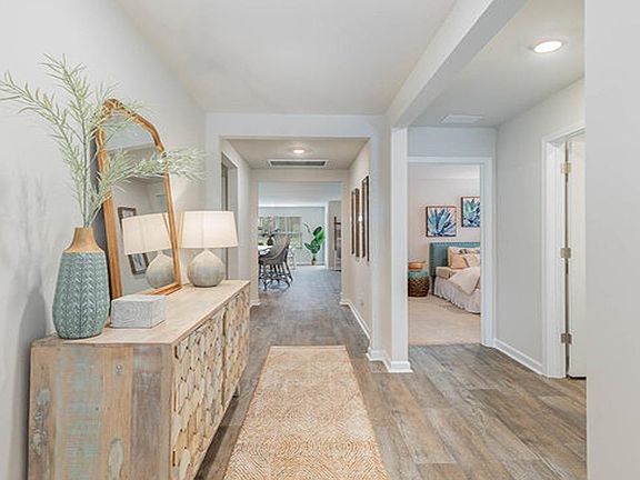 The Aria is one of our most popular floor plans. This home offers one story living with an open concept kitchen/living/dining areas. The kitchen is equipped with plenty of cabinet space, a large island, roomy pantry and stainless appliances. The owner's suite is nestled in the back of the home giving separation from the guest rooms. You will enjoy the covered back porch off from the dining area when you can enjoy the coastal air. This home comes complete with 2 inch faux wood blinds on all standard windows and the convenience of our smart home technology. This is America's Smart Home! Each of our homes comes with an industry leading smart home technology package that will allow you to control the thermostat, front door light and lock, and video doorbell from your smartphone or with voice commands to Alexa. *Photos are of a similar Sullivan home. (Home and community information, including pricing, included features, terms, availability and amenities, are subject to change prior to sale at any time without notice or obligation. Square footages are approximate. Pictures, photographs, colors, features, and sizes are for illustration purposes only and will vary from the homes as built. Equal housing opportunity builder.)