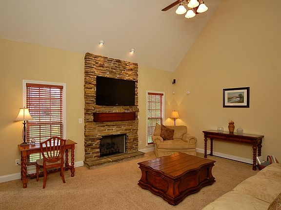 Beautiful home in the Meadowlands Golf Community! Open floor plan with trim package. 2 story vaulted Living room has stone fireplace with custom mantle. Formal Dining room. Kitchen with breakfast bar, granite counters and tile backsplash. Sunny breakfast area. Main level Master suite with triple trey ceiling has dual vanities, soaking tub, walk-in shower. Upstairs are 2 more bedrooms and bonus room. Wired for surround sound. Security system. Deck. Neighborhood pool, tennis, playground.