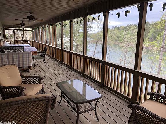 A short walk down your stone steps to the water's edge & easily pull a boat up to the shoreline(169 ft. of lake frontage). The lot has a very low white line which provides a wide open Lake View from the house!Screened-in Sleeping Porch across the entire lakeside of the house under roof=586sqft.Stone Gas Fireplace outdoors near the Hot Tub where you can unwind with a glass of wine while the kids play in the game room downstairs.18' Vaulted Pine ceilings on main floor.Hill Creek Marina & Boat Ramp close by.