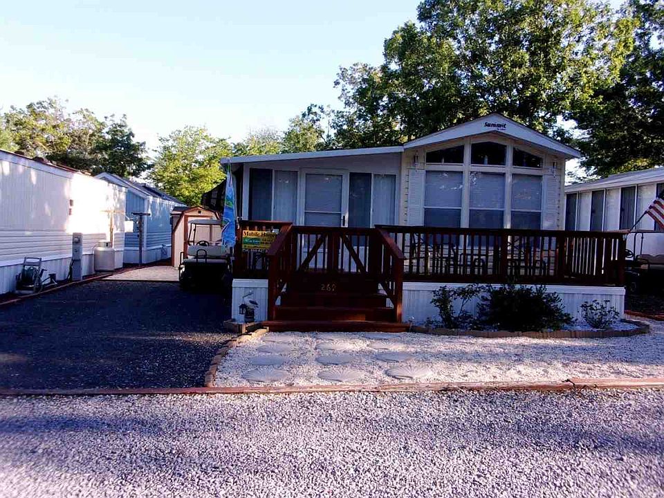 Presenting a beautifully renovated 2 bedroom park model at Holly Lake. This well maintained unit offers the best in vacationing and it's brimming with upgrades: in addition to the stunning conversion to a 2nd full bedroom, there are new Pergo Laminate floors throughout the unit, a new hot water heater, the 30 year roof is just 7 years old, the Heater was replaced in 2015, as were the bathroom sink, cabinet & toilet. The golf cart batteries are also new from 2015. There are front and rear decks, a spacious, open Florida room and a full length driveway. Come see it for yourself, it's not only beautiful but it sits on very desirable street. This wonderful shore home Sleeps 8, has C/A & propane Gas heat, storage shed, and includes the golf cart! All this in a beautiful gated lake community w/Clubhouse, Pool, Boating & Fishing! Wow!