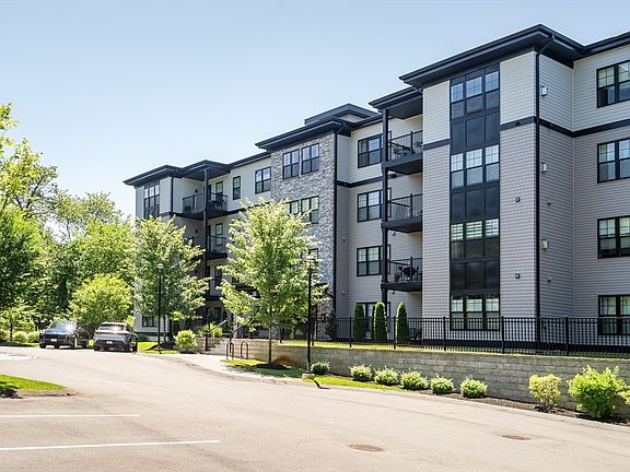 Stunning penthouse unit in a two-year young condominium complex designed for today's living! This spacious better-than-new corner condo offers singe-level living and a wonderful open concept floor plan. The sunny living room is adorned by a striking gas-fireplace with stone finish & floating mantle. The centrally-placed Chef's kitchen blends function, design, and quality showcasing a dramatic island, quartz countertops, quality cabinets, GE stainless appliances, under-cabinet lighting, and gas cooking. The primary suite includes a large walk-in closet and a generous en-suite bath with glass-enclosed shower, double sink, and radiant floor heating. The many extras include: home office, private balcony, heated garage parking, central AC, closet storage systems, Hunter Douglas top-down bottom-up shades, upgraded lighting, ceiling fans, in-unit laundry, extra storage, and more. Great commuting location near routes 95 & 93 and easy access to amenities and walking trails. You can have it ALL!