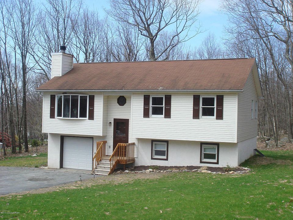 Perfect Investment for the First Time Home Buyer! Cozy & Affordable 4 Bedroom, 2 Full Bath Bi-Level with Built-In Garage! Tastefully Updated Kitchen with New Appliances and Custom Finishes in Both Bathrooms! Living Room with Brick Fireplace provides Nice Ambiance! Situated on Private 1 Acre Parcel with Paved Driveway! Quiet Low Dues Community Includes Beautiful In-Ground Pool with Views of the Delaware Water Gap! Close to Commuter Bus, Shopping & Schools! Move Right In!