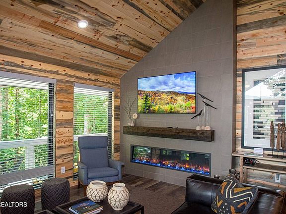 Don't settle for the ordinary; embrace the extraordinary. Whether you're seeking a getaway or an investment, this Mountain Modern masterpiece is ready to redefine your Smoky Mountain experience. Secure your piece of paradise, where contemporary elegance meets mountain charm, and every detail speaks of a vacation like no other! Boasting 3 large bedrooms with the warmth of blue pine interior, 2.5 bathrooms, and a game room, this cabin is a testament to modern luxury. Step outside onto the HUGE outdoor deck—a haven for entertainment and relaxation. From the BBQ grill to the hot tub, dining to casual seating, every detail is designed for your comfort and enjoyment. The heart of this cabin is its large kitchen featuring stainless steel appliances and a sit-down bar, setting the stage for culinary delights and gatherings. This is NOT your standard cabin—expect the extraordinary. Designer furnishings throughout ensure that every moment of your vacation is surrounded by comfort and style.