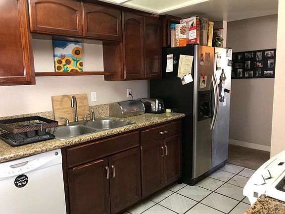 Huge back yard with above ground pool and large covered patio. Granite counters and tile floors in the kitchen and both bathrooms. In the past 2 years the AC, water heater, stainless steel refrigerator and garage doors have been replaced and the exterior was painted. lemon and orange trees, and variety of fruit trees.