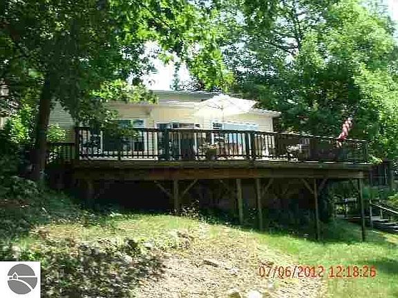 3-BEDROOM 1.5 BATH HOME HAS A BEAUTIFUL HILLSIDE VIEW OF SAGE LAKE. SANDY BEACH AND VERY LARGE DECK OFF THE LOWER LEVEL. NO HOT KITCHEN FOR YOU!!! THE KITCHEN/LIVING AND DINING GREAT ROOMS ARE IN THE LOWER LEVEL. NICE AND COOL FOR THE SUMMERS.STEPS DOWN TO THE WATER AND STORAGE SHED AT WATER'S EDGE.
