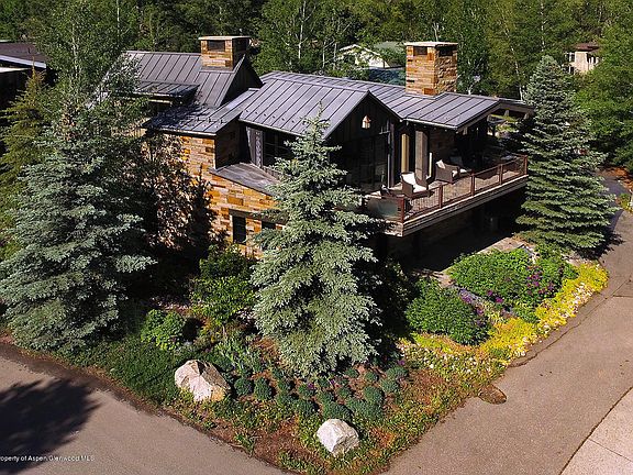 Always Open House Call for Appoinrtment Extraordinary mountain home located at the Hopkins footbridge. Views of Aspen mountain and Smuggler. Enjoy the sound and sight of the river. Six spacious bedrooms with custom baths. Expansive media room with custom bar and wine room. Five indoor fireplaces, Spacious custom gourmet kitchen. Open floor plan for gatherings. Outdoor fireplace on the top floor patio. Multiple outdoor spaces. Intimate courtyard with hot tub, and fire pit. Exquisite guest house. Walk to all Aspen has to offer.