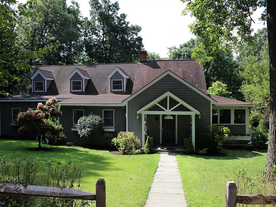 This charming cape style home has complete privacy on 5 acres in a top land conservancy area location. There are 3 en suite bedrooms ( master with sitting room, fireplace and office, 2 baths). The public rooms include a cook's kitchen with garland stove, family room with fireplace, large living room with floor to ceiling stone fireplace, formal dining room and wide wrap around porch for informal entertaining. Other amenities are a movie room, recreation room with bar and workout room. Turn Key! Also a 2 bedroom cottage, Kitchen, living room with fireplace for guests. Near train , rail trail and trendy Millerton village.