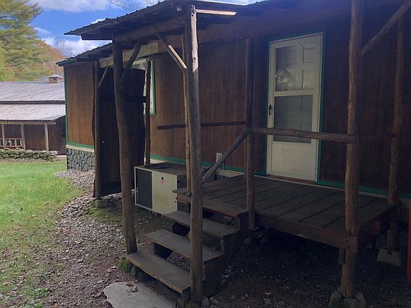 Pleasantly maintained single wide with addition giving it the look and feel of a Ranch style home. Quite location on over a 1/2 acre. Hugh garage with gantry crane. Covered lean-to on both sides of garage, one side stocked with fire wood (included), other side large enough for tractor. Covered porch with ramp out front overlooking perennial garden. Covered porch on back of house. New siding on all exterior. Beautiful bay window in living room overlooking fruit trees. Be prepared to have deer pass through the yard or stop by to graze from apple trees. Fenced garden, shed, blueberry bushes, lilac and honeysuckle. Great location with potential. Cash only.