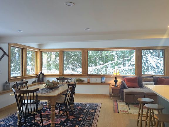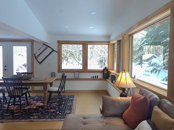 The home features 3 bedrooms and 2 full bathrooms and has been extensively renovated, with the first floor feeling like a brand-new home. Enjoy a brand-new kitchen, remodeled bathroom, new flooring, new windows, new lighting, and a brand-new staircase. Efficient heating throughout, paired with a wood stove, creates a warm and inviting atmosphere after a day on the slopes.
