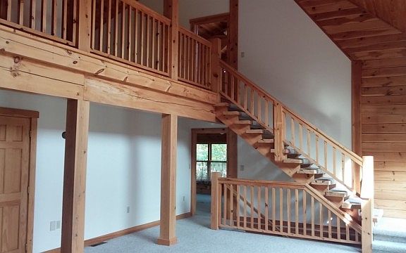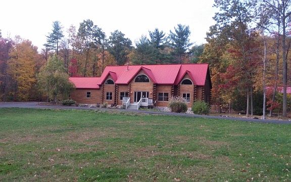 QUALITY BUILT Solid Log Home on 6.26 beautiful acres, 3 oversized BR, 2.5 BA, First Floor Master BR with jacuzzi, Gas see-through fireplace, cultured marble kitchen countertops with oversized island, three half moon windows, unique lighting features throughout, hardwood floors, central vac, wired smoke detectors, large finished rec room in basement, storage galore, pond with waterfall stream, 2 car attached plus 2 car detached log garages, appliances included, minutes to US Hwy 322. MUST SEE TO APPRECIATE!