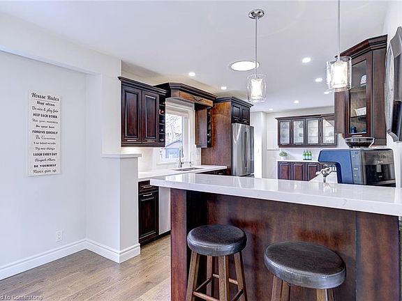 ** PUBLIC OPEN HOUSE SATURDAY APRIL 19TH 2-4PM ** Welcome to this exquisitely renovated 4 bedroom, 4 bathroom home situated on a large 59x115 ft lot on a quiet court in the highly sought-after College Park neighbourhood! As you enter, you'll be greeted by a stunning foyer leading to new engineered hardwood floors (2025) and gorgeous crown molding that seamlessly extends throughout the living room, dining room, family room and second floor. The culinary space is a dream with its stainless steel appliances all updated over time since 2022 including the gas stove. Luxurious quartz countertops paired with a matching backsplash complete the eat-in space. From the kitchen, step outside to your private backyard oasis, where you'll find a heated saltwater pool, ideal for hosting gatherings or simply unwinding and enjoying a family BBQ. Back inside relax and warm up in the spacious family room with a wood burning fireplace and soak in all the natural light flooding through the updated windows. Ascend the staircase to continue to the primary suite, your serene retreat updated in 2024. Three additional bedrooms are generously sized and thoughtfully designed. The finished basement offers a large recreation room, wet bar, 3 pc bath and loads of storage space. Enjoy more time splashing in the pool as the yard is low maintenance with an irrigation system. Ideally located with street access to 16 Mile Creek trail system, just minutes from Glen Abbey Golf Course, top-rated Oakville schools, including French Immersion, IB and AP program options, plus quick access to the 403, Oakville GO Station, and Downtown Oakville. This is more than just a house, it's the lifestyle upgrade you've been waiting for. Don't miss your opportunity to call this stunning property home.