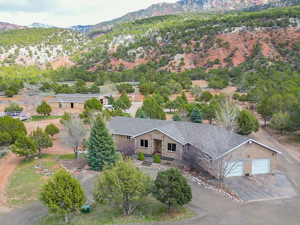 This home boasts of 5 bed 3.5 baths and storage space for everything. Full basement with a walk out and a wood burning stove downstairs. Upstairs is a gas fireplace and views from every window. There is a 6 stall horse barn along with more external corrals, a beautiful riding arena, round pen and bordering so much land to go ride out on the hills this location is ideal for the horse, cow, animal lovers!