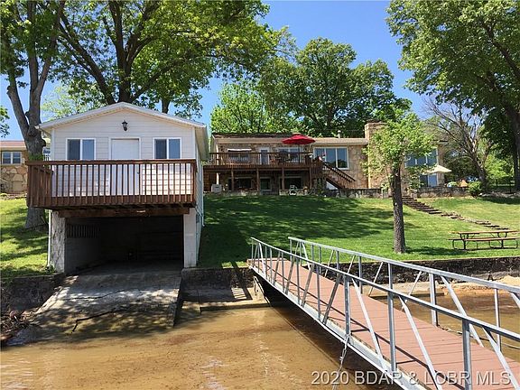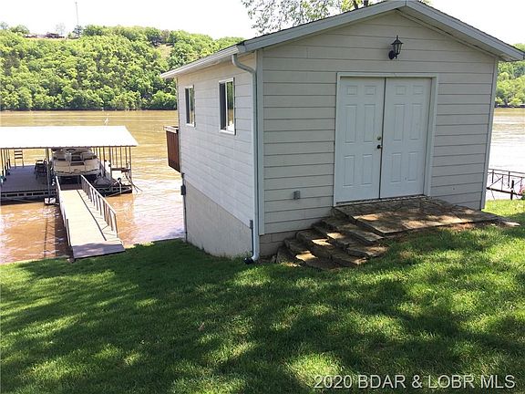 Never before on the market! This lakefront home is very unique, sits on a gentle lot with a beautiful view of the Big Niangua Arm of the lake. Gravel beach at the waters edge with good water depth under the dock. Blacktop to the door, in Gene's Point Subdivision. This is a ranch with a walk out fully finished lower level with tons off storage. Newer updated windows, Many updates and addition in 2007. Oversized two car attached garage. Lots of parking Walk into this galley kitchen with newer stainless steel appliances. Two living areas on the main level with a beautiful stone natural gas fireplace. Enjoy the view on the new no maintenance deck, off of the living room. Master bedroom and 2 bedrooms on the main level. The walkout level has a game room at one end and a huge living area with a second gas stone fireplace. Walk out onto the stone patio. Lakeside boat house with a possible man cave built on top. This is a must see to appreciate all of the updates.Tri-Toon pontoon included.