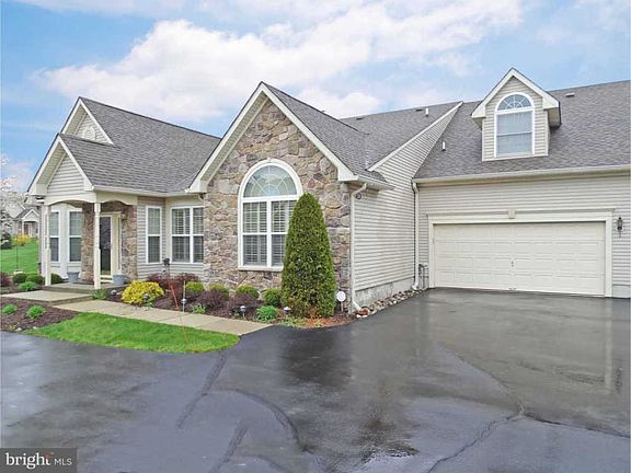 Welcome home to this highly desired 55 Plus community of the Villas at Shady Brook! This exceptional Thornhill model boasts immaculate, move-in condition, volume and 9-foot ceilings, and neutral upgraded decor throughout. No need to sacrifice living space and beautiful views whilst enjoying a wonderful resort-like lifestyle. Convenient location is near restaurants, shopping, medical facilities, towns and easy access to major cities. Enjoy an open floor plan from the living/dining rooms, to adjacent family room and kitchen, all with hardwood floors and volume ceilings. A welcoming and sun-drenched family room offers cathedral ceiling with fan, gas fireplace with mantel, and surrounded by windows, recessed lighting, and decorative shelving. The eat-in kitchen boasts abundant granite counter space with breakfast bar, upgraded white cabinetry, under-cabinet lighting, tiled backsplash, pantry, under-mount double sink with gooseneck faucet, recessed lighting, and decorative pendant lights above dining area. Stainless steel Appliances include a JennAire refrigerator with bottom freezer, gas range, built-in microwave, dishwasher, plus waste disposal. Move through the kitchen to a laundry room complete with Maytag washer and dryer, cabinetry, closet, and access to the 2-car garage. The den (currently used as an office), also with hardwood floor and recessed lights, features sliding glass doors leading to a 12' x 27' paver patio overlooking open space. A spacious en-suite main bedroom with cathedral ceiling and fan boasts a marble-tiled and mirrored full bath with 2 comfort-height white vanities, soaking tub, shower, 2 medicine cabinets, and linen closet. Completing the first level is a 2nd bedroom, tiled hall bath with white vanity and tub/shower, linen and coat closets. Upstairs discover a 3rd over-sized bedroom with fan, full bath, closet, and storage room with closeted utilities. Enjoy Clubhouse amenities including indoor and outdoor pools, tennis, gym, game rooms, and a myriad of activities. Association fees include CAM, lawn care, trash and snow removal, and roof replacement. Also worth mentioning: new HVAC (autumn 2017); alarm system with central-station monitoring; and custom shutters. Will I see you at the closing table?