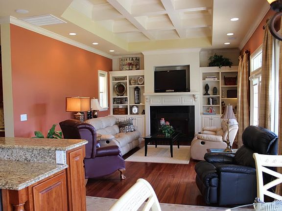 Fabulous, big lake view from this elegant, 4 bedroom, 3-1/2 bath, brick home. This home features an elevator, two story foyer and great room with elaborate coffered ceilings and a gourmet kitchen with custom cabinets, Wolf range, granite tops, wine fridge and upscale stainless appliances. The kitchen adjoins the open family room and spectacular views across the lake. Features of the home include 3 fireplaces, a large dining room, lots of storage, and a bonus room. The large master suite has a sitting room with a fireplace and two customized walk-in master closets. The master bath features two separate vanities, a center Jacuzzi, wall fountain and double sided shower. There are diagonal tiles throughout first floor, Brazilian cherry floors in MBR, library/office, family room, upstairs hall and second master-up with balcony, two additional bedrooms up. Enjoy sitting out on your dock, or covered lanai, or second floor balcony, or side entry with walled courtyard. An oversized- three car garage with Epoxy floor, sink and a sturdy wall of wood shelving.