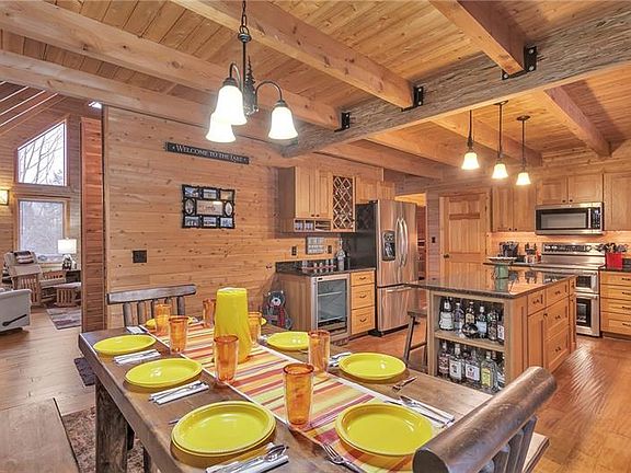 Check out this much coveted log style home on a beautiful double lot at Indian Lake. This 5 bed, 3 bath home comes completely furnished with exquisite furniture, pool table, golf cart and lawn tractor. This pristine home boasts a warm cedar interior with floor to ceiling windows, vaulted beamed ceilings, lovely hardwood floors, well appointed open living spaces including spectacular great room, master ensuite, spacious loft area, family/game rooms, upscale kitchen & appliances, two propane fireplaces, Central A/C and upper and lower deck areas for entertaining. Sellers recent improvements to this impeccable property include new LED lighting throughout, new covered entryway, extensive landscaping including French drains, new fencing and newly stained exterior The new groomed and lighted path leads to the phenomenal 50' of lake frontage with two docks, new solar boat lift, gorgeous lake views and the perfect place to spend a sunny afternoon. All of this on beautiful private Indian Lake.