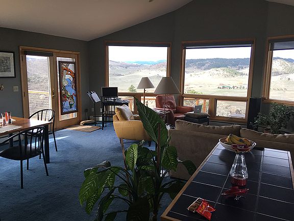 Capture the most breathtaking mountain views of Mummy Range from the wrap around balcony of this 2 bed, 2 bath home! This Panoramic Mountain Retreat offers 1,328 square feet of finished space and an open floor plan. This mountain escape sits atop a cliff overlooking 48 acres of cross fenced pasture with 360 degree views! Gordon creek and ditch #8 flow through this Ag zoned property. Easy access to County Road 74E. Additional 704 sq ft of heated space accessible from Garage.