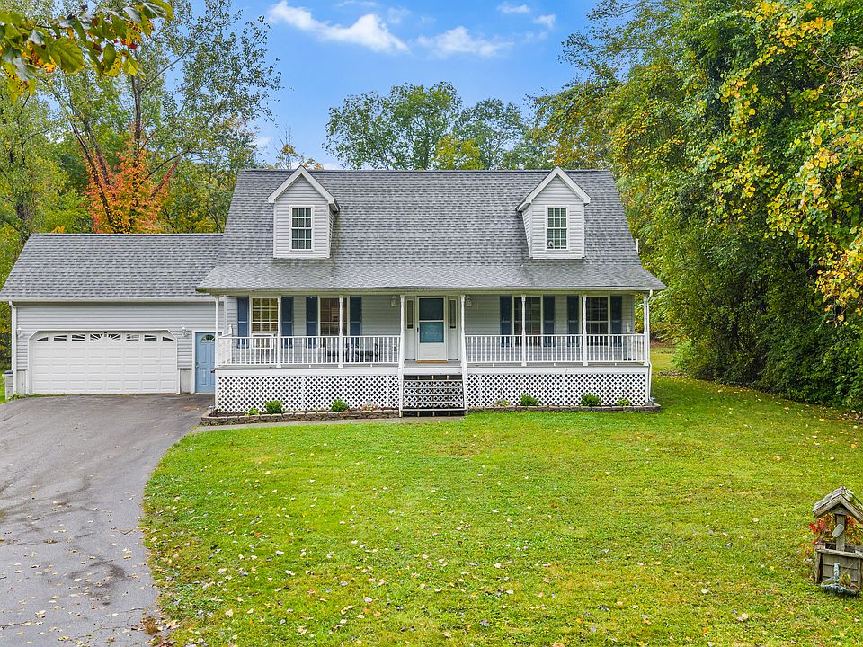 Welcome to this warm and inviting 3-bedroom, 2.5-bath Cape set on 1.88 acres in Bozrah. From the moment you arrive, you'll appreciate the quiet setting, the 2-car attached garage, utility shed with power, sprawling front porch and a spacious back deck overlooking a big, level yard-perfect for gatherings or simply relaxing outdoors. Inside, you'll find new carpet, fresh paint, and a partially finished basement that adds even more living space. Originally designed as a 5-bedroom, this home offers the flexibility to add 2 more bedrooms on the main floor if desired. Additional attic storage and plenty of thoughtful details make this property both functional and full of potential. If you're looking for a home with space, versatility, and a private setting, this Cape Cod has so much to offer.