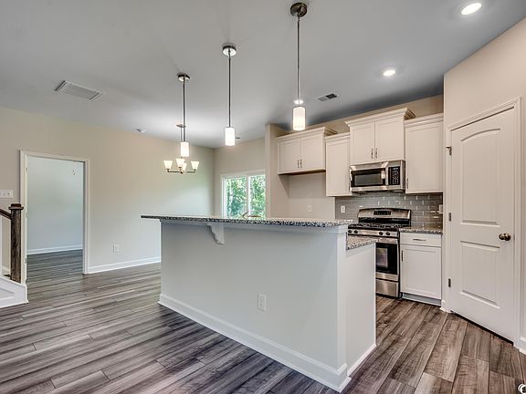 Traditional style two story home with the primary master suite located on the first floor with double sinks & 5 foot tiled shower in the bath. Open plan with powder room, natural gas fireplace, lvp flooring, kitchen island with pendants, pantry closet and rear covered porch plus grilling concrete pad and rear gas line too! Natural gas community with gas heat/cooking & hot water! Fantastic amenities center with pool, fitness center, bocce, pickleball, horseshoes and more! Three bedrooms and 2.5 baths and lots of upgrades, lvp flooring throughout the first floor, upgraded white shaker style cabinets and granite tops! Photos for illustration purposes, colors/features/options vary!