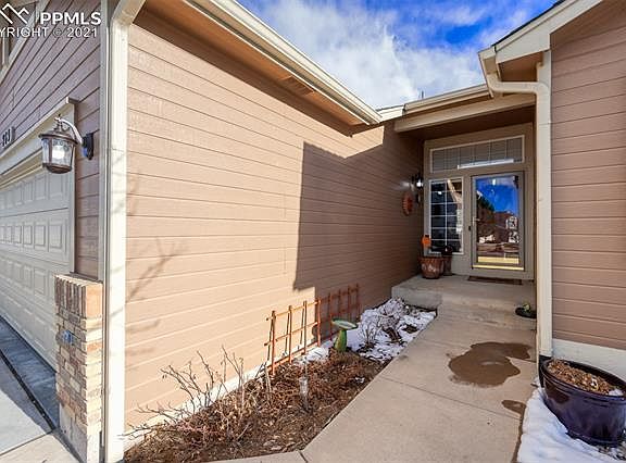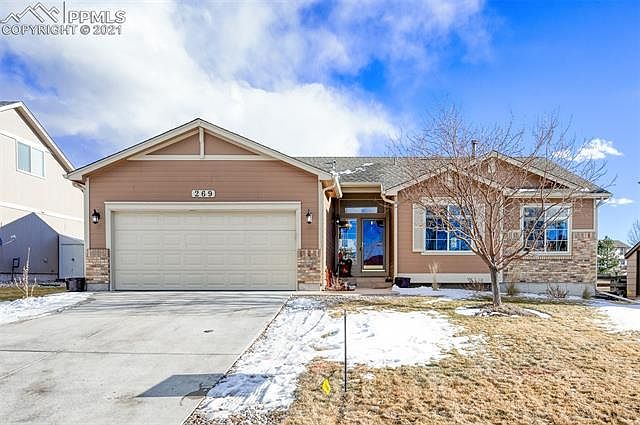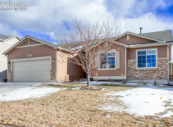 MAIN LEVEL LIVING! Master suite, kitchen, dining, and laundry are all on the main level! Lovely ranch home with hardwood floors, vaulted ceilings, and mountain views! Amazing kitchen with granite counter tops, island, & backsplash, GE Cafe stainless steel appliances, crown moulding on cabinets, roll-out shelves, filtered water dispenser, and pantry. Master bedroom has vaulted ceiling, a walk-in closet, an adjoining bath with double vanities, soaking tub with shower, and a private water closet. Separate dining room with hardwood floors, two-sided gas fireplace, and walkout to the 12 x 10 back patio. Main level living room has vaulted ceiling, two-sided fireplace, and gorgeous hardwood floors. Expansive basement with 34 x 13 Family Room, wired for surround sound, a gas fireplace, and plenty of room to spread out. Basement has wood veneer flooring, a fourth bedroom, a full bath, a massive 21 x 12 storage room, and a craft area - fantastic basement! Other features include a security system, ceiling fans throughout, reverse osmosis water filtration system for the kitchen sink, a water softener, an electric air filter, and a 50-gallon water heater! The backyard is a gardener's dream - multiple flower beds, automatic sprinkler system, storage shed, and a large patio. Walk 1 block to a huge park, or take a walk around the neighborhood on the hiking trail. Walking distance to Bear Creek Elementary. Drive 5 minutes to Sante Fe Trail or Fox Run Park - your choice! Only 5 minutes to I-25, 10- minutes to the Air Force Academy, 15 minutes to downtown Colorado Springs, and 45 minutes to Denver.