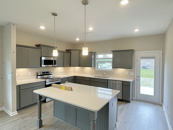 This home Plan (2357 Elevation GHI) features a four sides brick exterior. Inside you will find laminate flooring in the great room and kitchen as well as granite countertops in the kitchen. ALL stainless steel kitchen appliances and blinds are INCLUDED!!