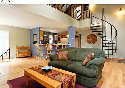 Must see this magical remodeled home w/southern light,spacious open floor plan includes living room w/fireplace, kitchen w/.eating bar,&dining area w/view.New hardwood floors & updated kitchen & baths with tile.Newly finished Lower level Media Room w/fireplace,wet bar, wood flr, private bedroom w/bath,Murphy bed&custom wood finishing.Property is private,fenced w/hot tub&backs toNtl Forest. Landscapped w/fruit trees&custom rock work.New septic leach field 1999,newer roof&decks.PARADISE!