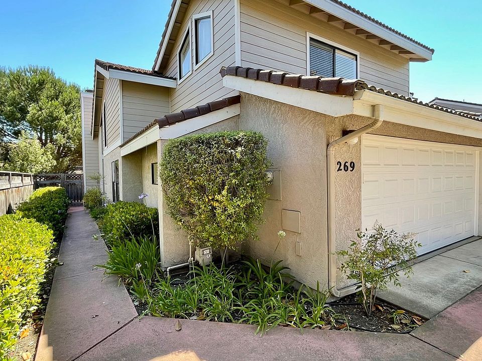 This charming 3-bedroom townhome in Margarita Villas has a bright and open feel with plenty of windows to let in natural light and vaulted ceilings to provide a spacious open concept feeling. There are hardwood floors throughout with a master suite and 2nd bedroom on the upper level and one bedroom on the first floor. Living room and downstairs bedroom have sliding doors leading to a private fenced patio. There is a two-car garage and all appliances are included. Margarita Villas community includes a swimming pool surrounded by the nicely landscape greenbelt. Professionally managed by Link Real Estate Group, Inc. Lic#02180351