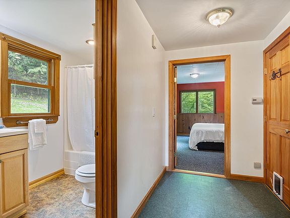 This home features 4 bedrooms and 2 full bathrooms. The main floor boasts an open-concept living, dining, and kitchen area with abundant natural light and warm wood accents. A screened-in porch provides a tranquil space to enjoy the surrounding nature.