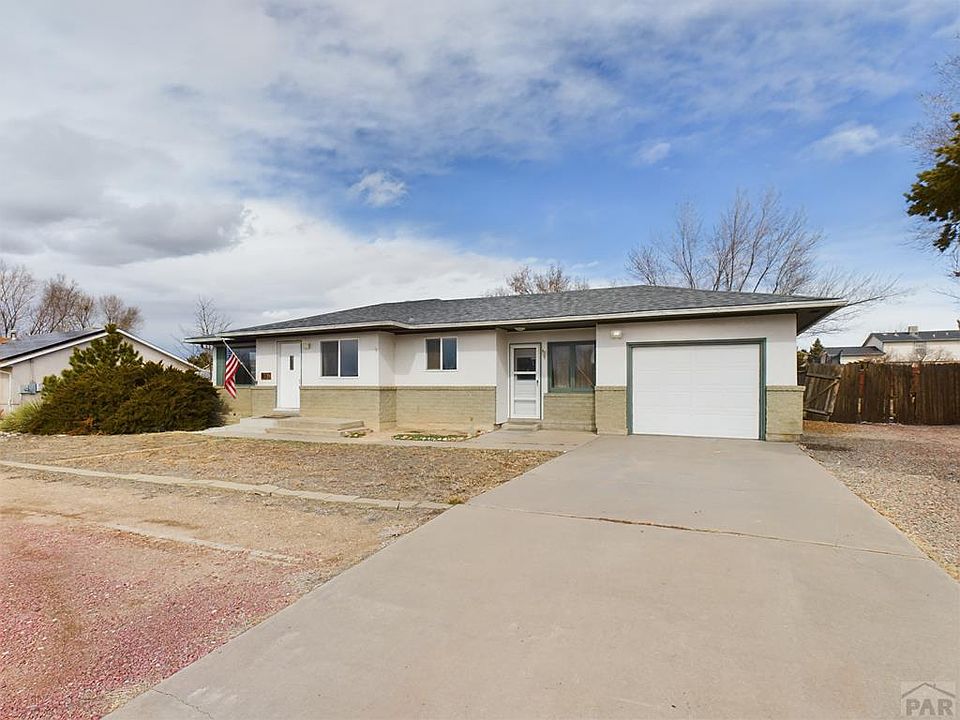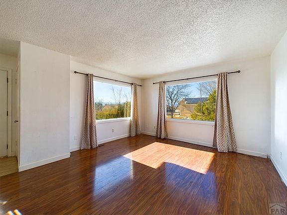 Beautiful Pueblo West Golf Course Rancher! This incredible home features 4 bedrooms, 2 bathrooms, 2,112 square feet, a full finished basement, and an oversized 1 car garage all on a 0.39 acre lot. As you enter the home you will be greeted by the large living room with sprawling luxury vinyl plank floors throughout. The large south facing windows allow an abundance of natural light. The kitchen features luxury vinyl plank flooring, stainless steel appliances, floor to ceiling cabinets and plenty of counter space. Two of the four bedrooms are located on the main level. Each of them has luxury vinyl plank floors, their own closets and share one full bathroom. The main level bathroom features luxury vinyl plank flooring, a large single vanity, and tile inlay tub shower combo. Downstairs you will find the large family room is perfect for entertaining all your guests. The two downstairs bedrooms share the second bathroom which features a single vanity and a tile inlay walk in shower. The front yard features mature shrubs and the backyard includes a fully enclosed sunroom, mature trees and is fully fenced. Do not miss out on the opportunity to make this incredible home yours.