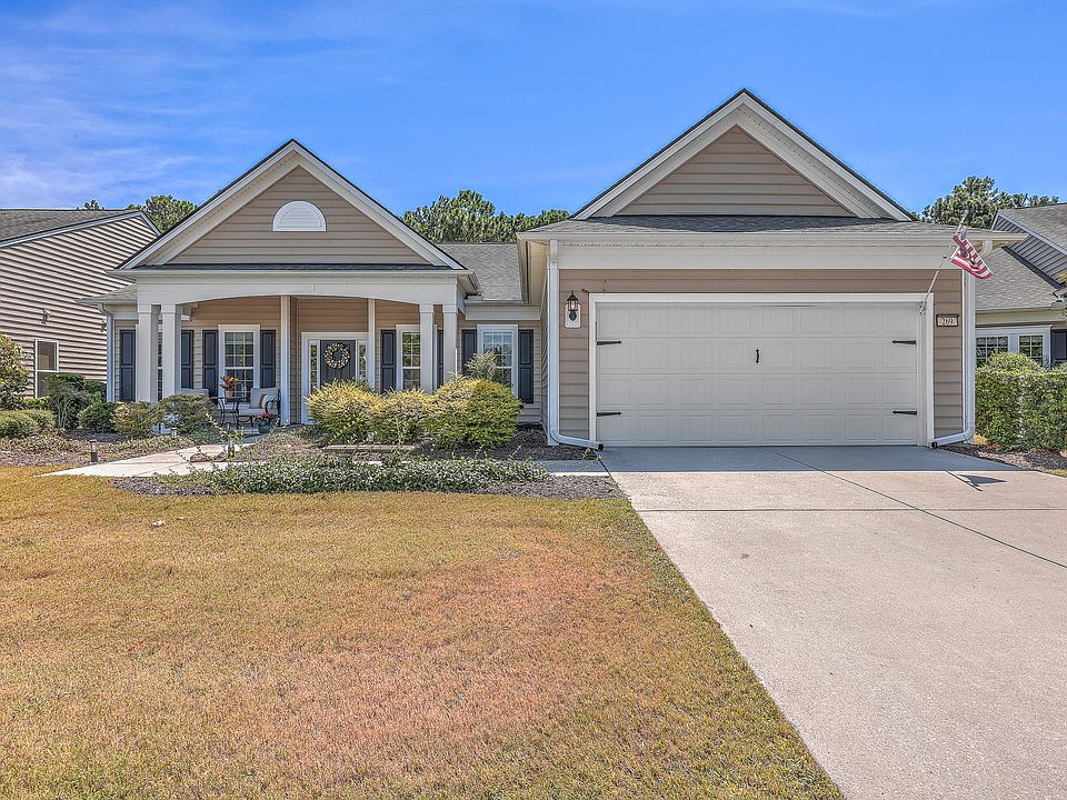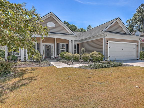 Welcome to your dream retreat in the vibrant gated 55+ community of Del Webb at Cane Bay Plantation! This stunning ranch-style home with proper southern style full front porch is perfectly situated at the end of a peaceful cul-de-sac, offering privacy and tranquility. With captivating views of the lake in the front, beautifully landscaped property and private backyard, this residence is designed for both relaxation and entertaining.As you step inside, you'll be greeted by an open and airy floor plan that seamlessly connects living spaces. Natural light floods the interior, highlighting the exquisite hardwood flooring and soaring ceilings throughout. The spacious living area features a cozy fireplace, creating a warm focal point for gatherings with family and friendsNumerous upgrades throughout this Blufton floor plan will delight you. This home boasts two generously sized bedrooms, including a luxurious Owner's suite with a tray ceiling, large walk-in closet, and serene views of the private backyard. The en-suite bathroom is designed for comfort and features built-ins for extra storage, dual vanity, tiled flooring and an upgraded shower, ensuring spa-like relaxation every day. An expansive secondary bedroom measuring 11x18 provides ample space for a secondary Owner's Suite, guests or hobbies, with private bath entrance. A versatile den near the entrance can easily be converted into a third bedroom if desired. The chef's kitchen is a delight, featuring gleaming granite counter tops and cabinet space, perfect for preparing meals and entertaining. Enjoy casual dining in the charming breakfast nook towards the rear of the home, or host formal dinners in the designated dining area towards the front of the home. A sunroom adds to the appeal for all seasons living and serves as a perfect spot for morning coffee or afternoon reading. The garage is oversized with an extra 4 feet of space, and the laundry room features a utility sink and built-ins for storage. Located on one of the best lots in Del Webb, this home offers just a short walk to a plethora of amenities within the security-gated community, including pools, fitness centers, tennis courts, and social clubs. Whether you're looking for relaxation, recreation, or community engagement, Del Webb Active Adult Community truly has it all! Landscaping maintenance is included in hoa fees. For added convenience, the option to purchase this home fully furnished makes transitioning to your new lifestyle in Summerville, South Carolina, a breeze. Don't miss the opportunity to make this beautiful ranch home your own schedule your showing today!