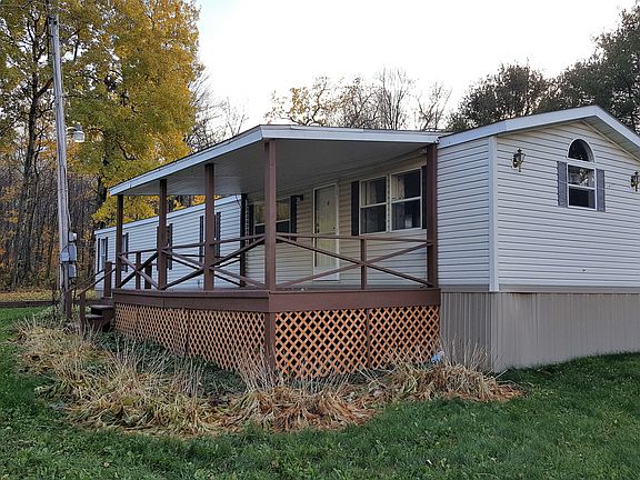 FOR SALE- 3 bedroom, 1 bathroom trailer on 10.57 acres. This could be a wonderful starter home or camp! This property has one small pasture with a partially built shelter (walls just need put back up) with three lines of regular wire and top line is electric white rope. Which would be great for an hobbie farmer! The property also has a great sized shed with a covered patio for all storage and maintenance needs. Another feature of the property are two covered porches that help you enjoy all of nature in winter, spring, summer and fall! An iron filtration, softener and tankless hot water systems were put in a little over a year ago. All rooms have closets in them and all rooms are decent sizes!!! Do not waste time, you need to check this gem out for yourself in person! Plus taxes only run about $1,200 Per Year!!!!!