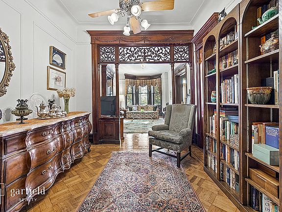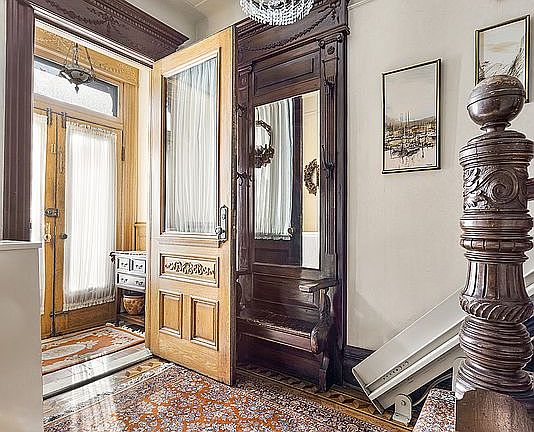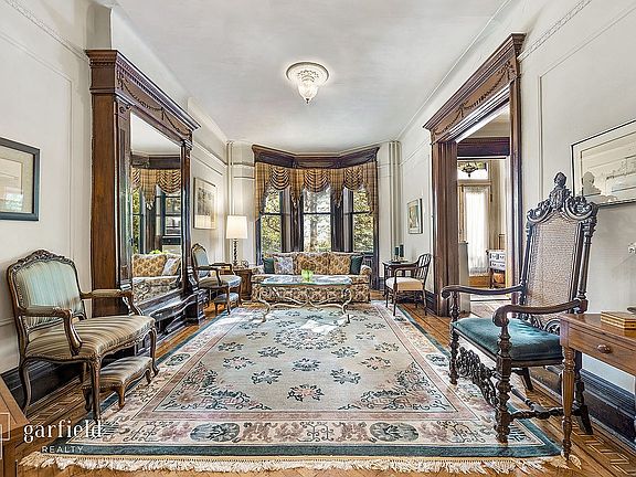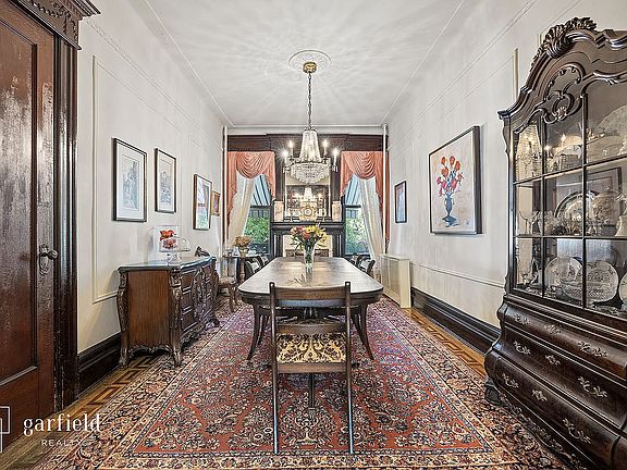 Enter up the front steps to the parlor floor and owner’s duplex, you immediately notice every detail from the front doors, to the tiled floor of the front entrance to the entrance-way pier mirror, to the hand-carved banister and gorgeous fretwork of the inside stairway. The living room features another large pier mirror, original floors, and traditional woodwork, which continues through to the middle/sitting room, and finally, to the formal dining room with original pocket doors and a beautiful decorative fireplace. The kitchen is thoughtfully designed with stainless steel appliances and a large built-in pantry for storage. Just off the kitchen is a deck with a staircase leading down to the well-designed backyard- a combination of greenery and pavers- perfect for a quiet morning coffee or for entertaining friends and family. The top floor contains an over-sized primary bedroom and has a decorative fireplace and original fretwork, that leads into a dressing room with 2 closets. There are also an additional 3 bedrooms on that floor, and 2 hallway closets providing plenty of space and flexibility.