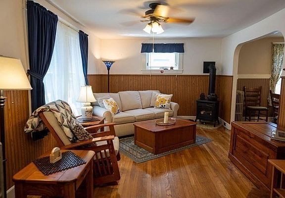 Welcome Home! This lovely 3 bedroom 3 bath home is close to it all! Warm tones and a tile floor welcome you as you enter the home. The living room features hardwood floors and greets you with large windows and a ceiling fan. The dining room has a built in cabinet, hardwood floors and easy access to a living/media area with full bath and a separate entrance to the yard. The kitchen features a breakfast nook and plenty of storage in the cabinetry. Head upstairs to 3 bedrooms (one is currently used as a home office) and a large full bath complete with cast iron tub/shower combo. Outside you'll find a paver patio and wood deck creating a wonderful oasis for you to escape to or entertain guests. The yard is bordered by fencing for approximately 3/4 of the yard. A separate outbuilding functions as a 1 car garage and additional storage. In the mostly unfinished basement you will find the laundry and a full bath as well as a large workbench. Home has been well cared for and it is encased in v