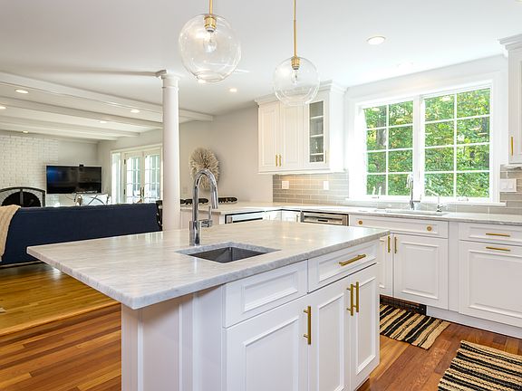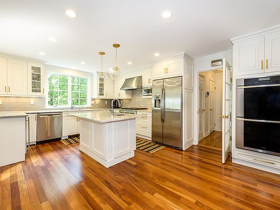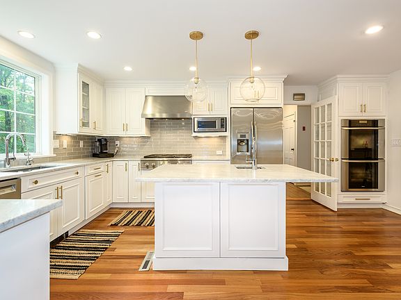 Beautifully updated 4-bedroom Garrison Colonial conveniently located between Long Ridge and High Ridge. The dream kitchen is appointed with marble tops, center island, Miele double oven, custom pantry, wine cooler and barstool seating. The kitchen opens to a fire-lit family room with French doors leading to an oversized composite deck. A stylish dining room and modern living room, with fireplace make for easy entertaining. A newly remodeled powder room and mudroom complete the first floor. Four bedrooms are all on the second floor highlighted by the master bedroom complete with an en-suite bath with heated floor, steam shower and Jacuzzi tub. Adjoining the master suite is a functional home office with attached sun-drenched balcony. All bedrooms have custom built-in closets. The lower level has a laundry room, craft room or den, and a large play area with walk out to yard. Freshly painted throughout, updated recessed & designer lighting, Nest thermostats, and the entire home managed by Vivint Smart Home Technology. The home is sited on a manageable acre of verdant land ideal for play or relaxation. Easy commute to Greenwich, Westchester or NYC. Welcome Home!