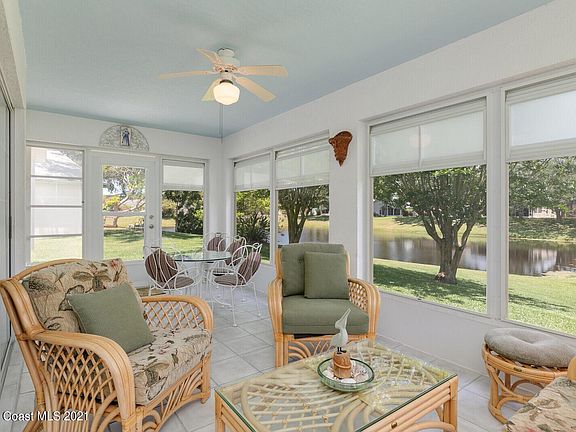 Lovely, bright, sunlit home in cul-de-sac neighborhood. This open floorplan includes many highlights like high ceilings, sky lights & an enclosed back porch that overlooks the lake. The entryway opens to a living room on the left, perfect for entertaining or relaxing, then flows right to the kitchen which overlooks a family room fit for livelier living & enjoyment. Kitchen conveniences include an island, a bar countertop, nice sized pantry & access to the laundry room that leads to the 2-car garage. Spare bedrooms & bath are on opposite side of house from the owner's suite, which touts a view of the lake, sunken tub & separate shower, plus 2 closets including a walk-in. This home is walking distance to Wickham Park & close to schools, shopping, golf & the beaches. Come take a look!