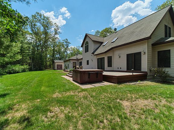 Custom built 3 bedroom, 5 bathroom home with deluxe pole barn sitting on 5 wooded acres! This home has it all! Master suite, main floor laundry, built in surround sound inside & outside, geothermal heating & cooling, expansive deck, hot tub, large kitchen, bathroom on every level, 784sqft heated attached garage w/ 220 amp electric, underground sprinkler, huge basement with high ceilings, Andersen windows, engineered shingles. The pole barn come complete with 14' ceiling, 3 overhead doors, bathroom, kitchen, 220 electric and air compressor. The main floor has master suite w/ walk in closet, 2 half bathrooms, laundry, formal dining room, large kitchen with island, and living room. Upstairs is the loft area with large storage compartments, 2 bedrooms with Jack & Jill full bathroom. The Basement (1,890 sqft) is ready to be finished, with 8ft ceilings and a full bathroom already in place. This home was practically made for entertaining, inside and out!
