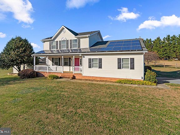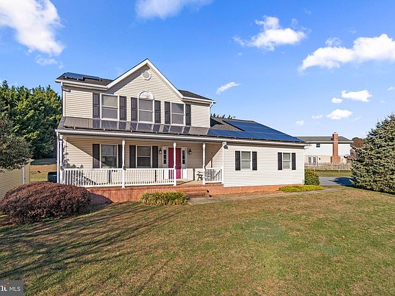 Welcome to this well-maintained 3-bedroom home, offering both comfort and functionality. Begin your tour on the welcoming covered front porch, perfect for relaxing evenings. Inside, the eat-in kitchen boasts granite countertops and stainless steel appliances, including a side-by-side refrigerator with full height freezer and a microwave rangehood. Adjacent to the kitchen, the cozy family room features a vaulted ceiling and a brick fireplace with an insert and seamlessly connects to a spacious all-weather sunroom for year-round enjoyment. The formal dining room is adorned with chair rail and crown molding, and an additional room on the main level serves perfectly as a living room or home office. A convenient half bath completes the main floor. Upstairs, you'll find a full hallway bath and three bedrooms, including an owner's suite with an ensuite bathroom. The lower level provides ample storage space, a laundry area, and walkout access to the backyard. Additional highlights include a two-car garage, a deck, a large outbuilding, and a spacious backyard. Plus, the owned solar panel system adds energy efficiency. This home offers the perfect blend of style, space, and sustainability—schedule your tour today!