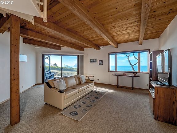 This Ocean front home is immaculate, exceptionally well designed and features a one-of-a-kind, knock your socks off panoramic ocean view from both floors. High above tsunami-inundation zone. Short Beach is your back yard, famous among agate and sand dollar hunters. Fritz tile floors(quartz, granite, marble mix), ash wood cabinetry. Low profile carpeting on both levels. Floor to ceiling windows, oversized double garage.