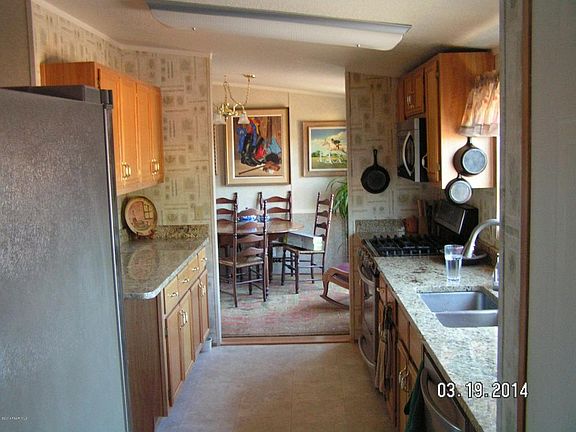 Top of the world view! Newer doublewide with many upgrades. Fenced and crossfenced w/ 5' noclimb. 4 stall MD barn w/ finished tack room and hay storage. 50' round pen, sheds, garage, and animal shelters. Also has a 2nd 4 stall Behlen Barn with turn outs and a 110' X 260' arena with 6'' of sand as a base. The whole property is treed and close to State Trust Land. Property includes 306-40-168D (2.2 acres with home) & 306-40-168B (12.0 acres). Bring all your animals - All the work is done!