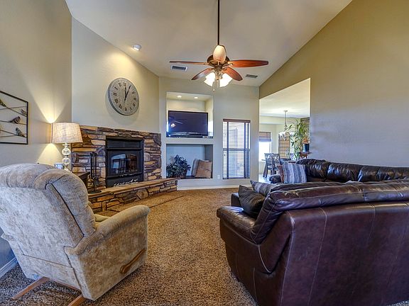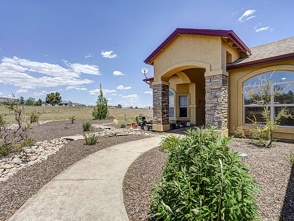 This beautiful custom home is located on 2+ acres of flat usable land! Views of San Francisco Peaks, Mingus Mtn & more. This charming 3 bedroom home w/split floor plan features a 3 car garage & RV hook-ups. The 3rd garage is perfect for a workshop w/half-bath inside for easy cleanup! The interior features vaulted ceilings & high-end fixtures. Multiple bay windows for lots of natural light. The kitchen features custom knotty Alder cabinets and oversized Travertine tile, & beautiful wood-tiled accent wall in the dining area. Living room features a cozy wood-burning fireplace w/removable safety bump pads on the hearth. Large open room just off the living room would make a great den/office. The master bedroom features a large master bath and private entrance to covered patio with HOT TUB!