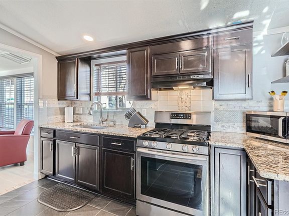 Welcome to this beautiful 3 bed 2 bath home in Foxridge Farm! Enter into your bright and spacious living area with new vinyl flooring. The kitchen is gorgeous with plenty of cabinets for extra storage, a pantry and tiled floors. The kitchen also includes granite countertops, custom tiled backsplash and all stainless appliances that are all included, plus there is room for a dining table. The primary bedroom is huge! Plenty of room for large furniture and a sitting nook next to either of the windows. Escape into your luxurious primary bathroom with a large soaking tub, decorative vanity and step-in shower. The second bath also has beautiful upgrades with custom tub surround and decorative vanity with tiled backsplash. Love your outdoor living space with large patio, beautiful landscaping and seasoned trees and shrubs, plus storage shed is a bonus! This home comes complete with washer and dryer and 2 off street parking spaces. Enjoy your modern onsite amenities including a clubhouse, pool, basketball court, school bus stop. Easy access to I-70 and minutes from DIA.
