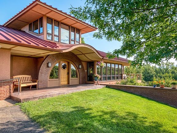 4 Bedroom, 3 Bath Frank Lloyd Inspired home built on 53.72 Acres (mol). Main floor hosts a master bedroom suite with his and hers closets, laundry/mud room, half bath, kitchen, dining room and living room (open concept), walkout lower level has 3 additional bedrooms, family room, full bath and large utility/storage room. The 4th bedroom in the lower level was currently used as an office space - which has a large walk in closet. Upper level loft area with built in shelves would make a good library, sewing room, office, etc! Wood flooring, intercom system, heated attached 2 car garage and a detached 60 x 40 pole shed with a heated shop. Enjoy the private, amazing views and enjoy an abundance of wildlife! Must see to appreciate the attention to detail in this lovely home! Tax Statement shows 58.72 acres...Seller is splitting 5 acres off and home will be sold with 53.72 acres.