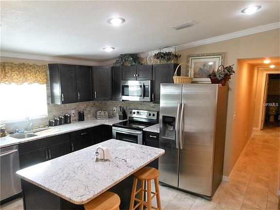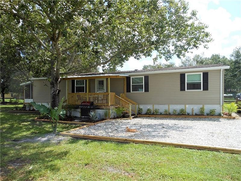 Completely updated 4 bed 2 bath manufactured home nestled on over 1.6 acres of cleared fenced property. Enter through the front door from the large 10 x 12 covered wood deck to find a home featuring beautiful granite countertops, dark wood cabinets, and ceiling fans throughout. Kitchen boasts a center eat at island and New stainless appliances with laundry room that leads out to yet another Covered wood deck. Home also features a split Masterbedroom layout . This home can accommodate the largest of families. The screened wood deck outside of the sliding doors from the master will provide couples with that much needed quiet time after a long day. The Master bath boasts 3 sinks, separate over sized soaker tub along with a walk in shower. This Non deed restricted Property contains more than enough room for all the toys and so much more with live stock allowed. A 14 'x 30' storage building w/ 50 amp electric circuit sits on this fantastic property for the DIY'er or hobby enthusiast. Near Interstate & shopping, just minutes from Tampa.