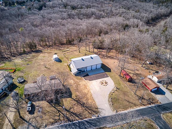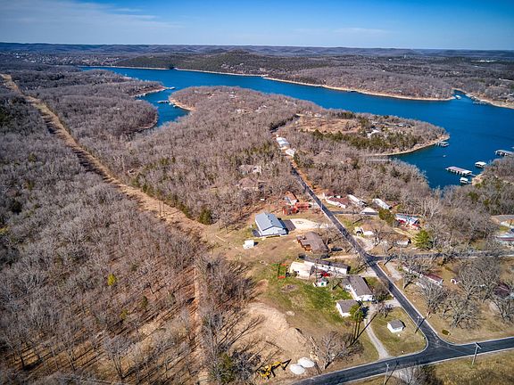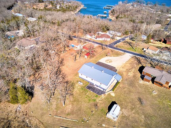 LIVE IN ONE SIDE AND HAVE ALL OF YOUR LAKE TOYS IN THE OTHER! Here's a 45' x 70' fully insulated steel building made for all your needs on an approximate 1 acre lot with lake views only 3 miles from Shell Knob's main drag. The 3-bay garage holds 5 vehicles....or several boats and RV's with a 24' x 20' overhead space for storage. Shop area has 16'4'' clearance. There is also a 14' x 14' finished office in the corner of the shop with it's own heating/cooling unit. The shop bathroom has a toilet, industrial size sink, hot water heater, and water softener. There is ample lighting with overhead fans. The big circle driveway allows for easy parking and loading/unloading. The attached two-story apartment boasts vinyl plank flooring, solid wood custom made cabinetry throughout, and 2 large bathrooms with with onyx showers and heavy glass doors. Kitchen has beautiful gray quartzite counter tops around the farm sink and bar, electric stove, oven, fridge and microwave. Upstairs is huge bedroom or multi-purpose room with cushioned seating along one side and windows on the other with great lake views. Outside on the living side is a concrete breezeway the meanders to the 17' x 40'' stamped patio, big enough for a barn dance....or just cook out and watch the sunset. A small shed with a loft will hold yard equipment and tools. A 10' x 28' boat slip with an 8,800 lb lift and locker is available to buy for additional $$. PROPERTY CAN BE USED FOR NIGHLY RENTALS! Come take a look at this amazing property!