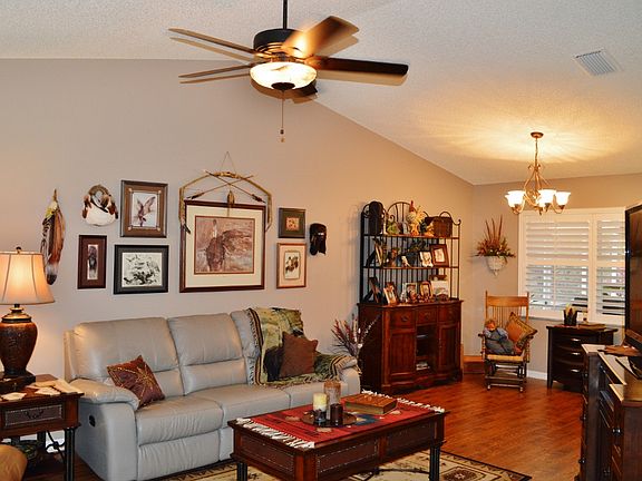 Inventory is scarce in Highland Lakes, but here is your perfect home! Absolutely gorgeous, meticulously decorated and upgraded, 3 bedroom, 2 bath home. Spacious living area with high grade laminate wood flooring, and volume ceilings. The kitchen has a breakfast room, stainless steel appliances, with tinted glass slider (for privacy), which opens to a screened-in porch surrounded by lush landscaping and decorative edging. The master bedroom has walk-in closets, dual sinks in master bath, and a large separate shower. Everything in the home is clean and bright, including the immaculate, oversized two car garage, with epoxy floor, work counter, and cabinets. Washer and dryer include work sink. Newer roof with lifetime warranty! Transferable termite bond. Other features include new paint inside and out, plantation shutters throughout, chair rail molding, and much more--move-in ready. Highland Lakes community offers indoor and outdoor pools, indoor tennis courts, mature landscaping with bike and walking trails, fitness center, recreation center, driving range, softball field, and much more. Low HOA only $88! Fully equipped wood and metal shop for just $1 per month.